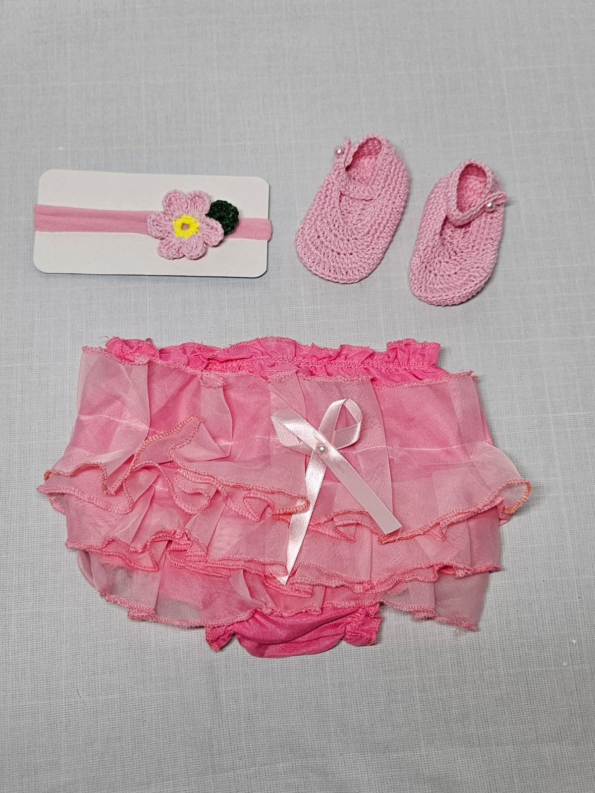 Kit Calcinha Bunda Rica com Sapatinho de Crochê e Lacinho Personalizado na Faixinha